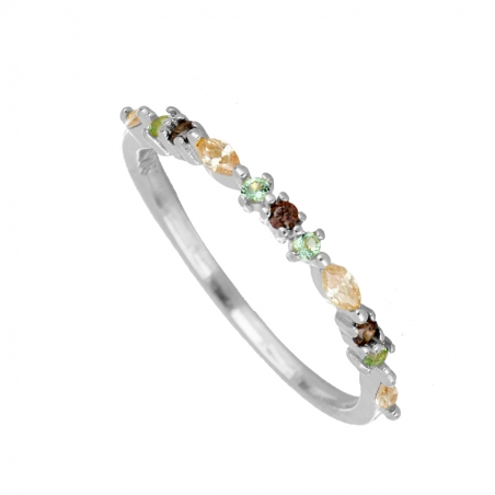 Anillo plata de primera ley y plata 925 bañada en oro con circonitas de colores.